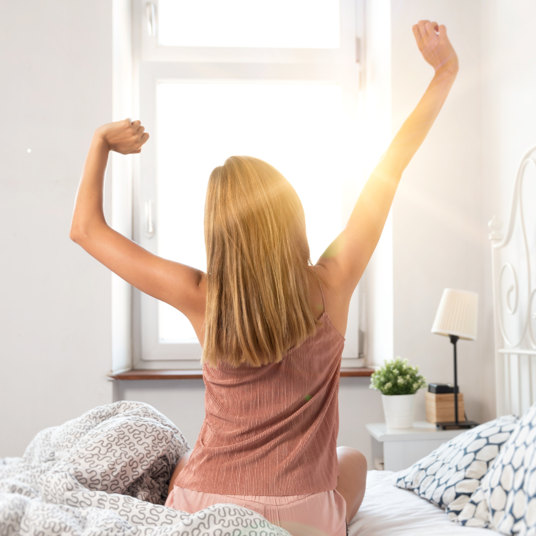 of our sunrise-simulating wake-up light, which gradually brightens from 0% to 100% to support your natural sleep cycle.